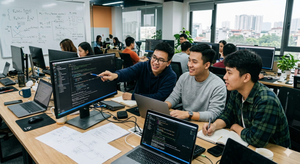 Về môi trường đào tạo, các trường có chương trình mạnh về AI tại Việt Nam có thể kể đến Đại học Bách Khoa Hà Nội, Đại học Bách Khoa TP.HCM, Đại học Khoa học Tự nhiên (ĐHQG TP.HCM), Đại học FPT và USTH (Đại học Khoa học và Công nghệ Hà Nội). Người tự học có thể bổ sung qua khóa Machine Learning của Andrew Ng trên Coursera, chuỗi Deep Learning Specialization và các bài giảng miễn phí của fast.ai – đây là những nguồn được cộng đồng kỹ sư AI quốc tế đánh giá cao.