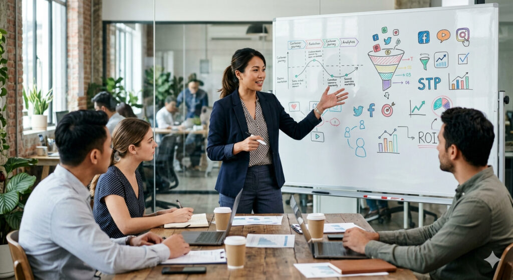 – Social Media Marketing — xây dựng cộng đồng, đăng nội dung tương tác trên Facebook, LinkedIn, TikTok để tạo nhận diện và thu hút khách hàng tiềm năng.