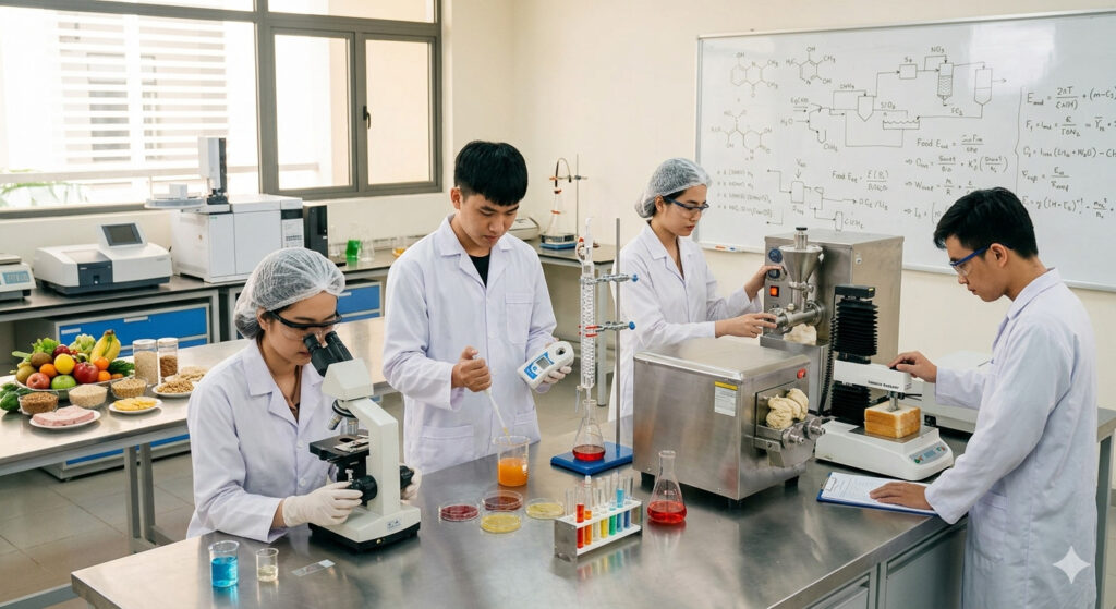Chương trình đào tạo ngành công nghệ thực phẩm tại các trường đại học Việt Nam thường kéo dài 4 năm, chia làm hai giai đoạn rõ ràng.