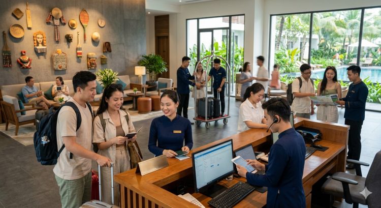 – Lễ tân khách sạn (Front Desk Receptionist): tiếp đón khách, check-in/check-out, xử lý yêu cầu. Lương 7–12 triệu/tháng.