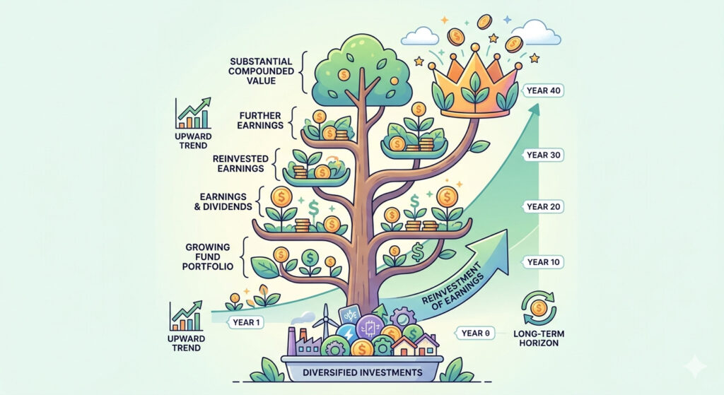 “Lãi kép không phải là phép màu, mà là kết quả của thời gian, tính kỷ luật và việc kiên trì tái đầu tư phần lợi nhuận thu được.”