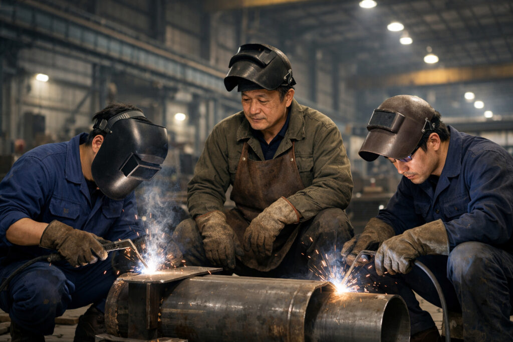 – Giai đoạn đầu (0–2 năm): thợ hàn học việc, rèn tay nghề cơ bản với SMAW và MIG, làm quen quy trình an toàn tại xưởng.
