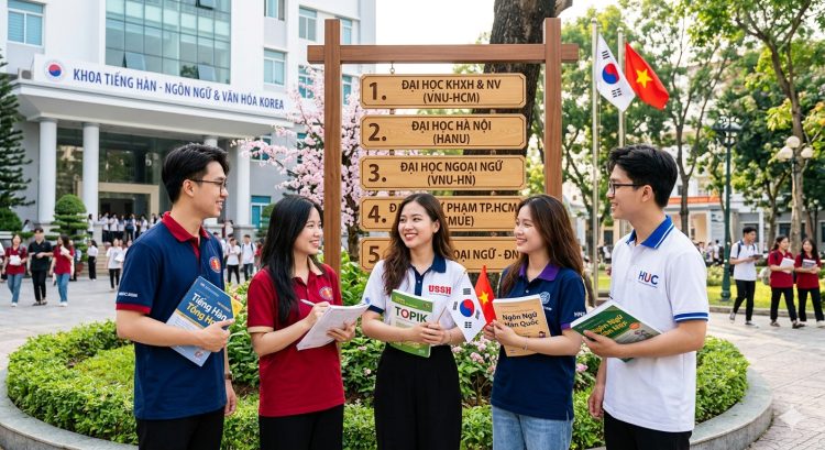 Nhiều bạn trẻ yêu văn hóa Hàn Quốc — từ K-pop, phim ảnh đến làn sóng doanh nghiệp FDI — đang cân nhắc chọn ngành học gắn liền với đất nước này. Nếu bạn đang tìm hiểu về top 5 trường đại học đào tạo ngành ngôn ngữ Hàn Quốc tại Việt Nam, bài viết này sẽ giúp bạn so sánh chương trình, điểm chuẩn, học bổng và định hướng nghề nghiệp sau tốt nghiệp một cách rõ ràng nhất.